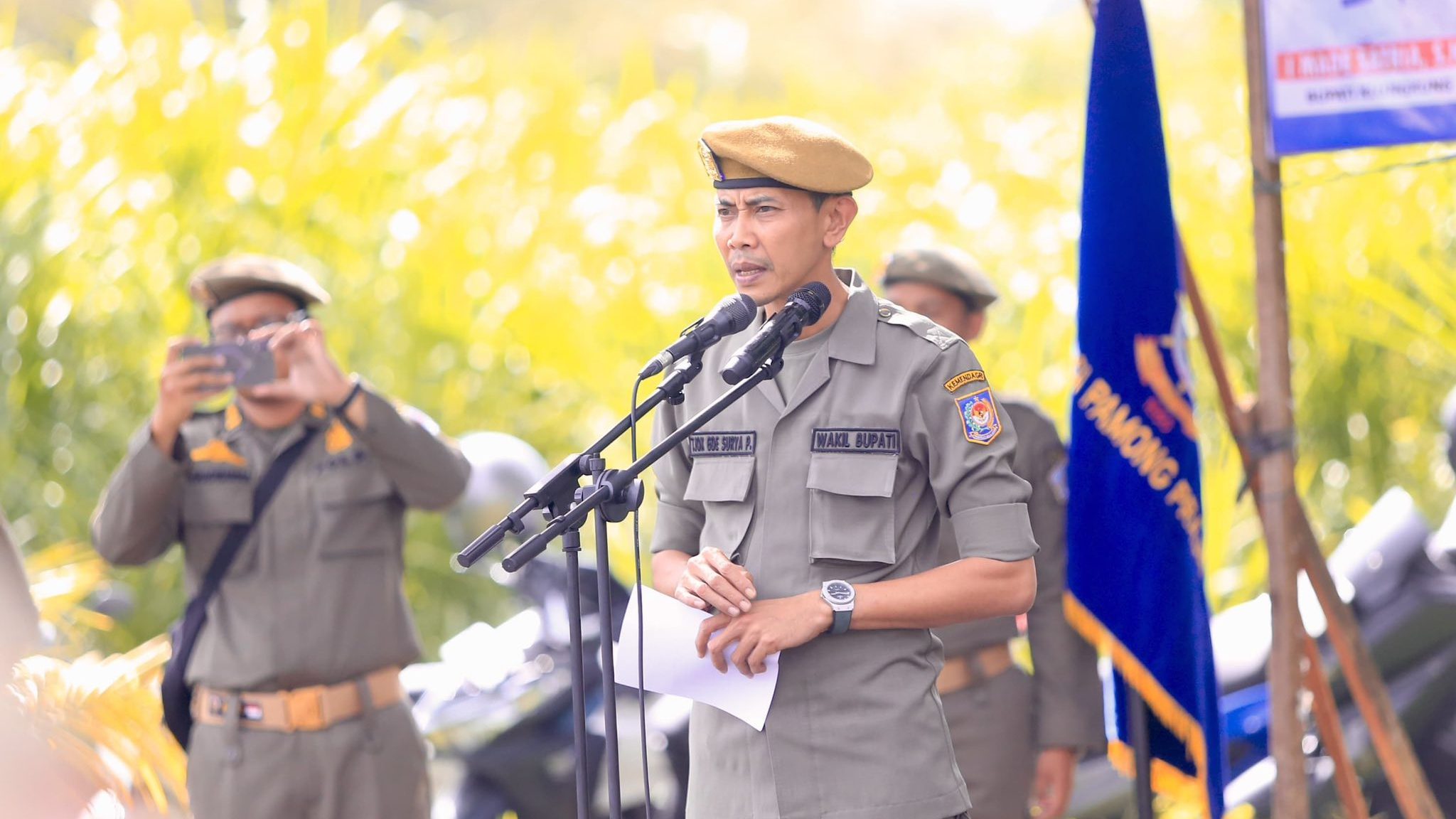 Wakil Bupati Tjokorda Gde Surya Putra dalam amanatnya menegaskan bahwa pengukuhan dan pembaretan bukan hanya bersifat seremonial, melainkan merupakan simbol dari kehormatan, kedisiplinan, dan kesiapsiagaan.