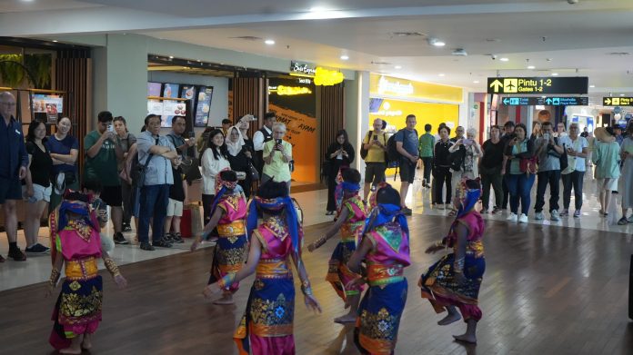 Pada Rabu (23/7/25), suasana terminal kedatangan dan keberangkatan domestik berubah menjadi panggung budaya, lengkap dengan pagelaran tari Gopala serta pembagian cinderamata gendang mini kepada penumpang anak-anak.