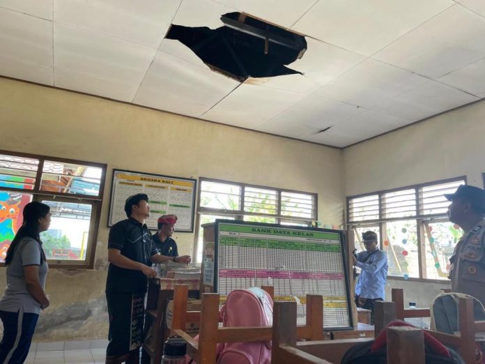 Pantauan di lapangan menunjukkan kondisi sekolah yang membahayakan. Plafon jebol, dinding berlubang, dan struktur bangunan yang sudah tidak layak pakai, menjadi ancaman nyata bagi keselamatan siswa dan guru. Bupati Kembang menanggapi dengan cepat dan langsung memberi perintah kepada Kepala Dinas Pendidikan, Kepemudaan, dan Olahraga Jembrana, I Gusti Putu Anom Saputra.