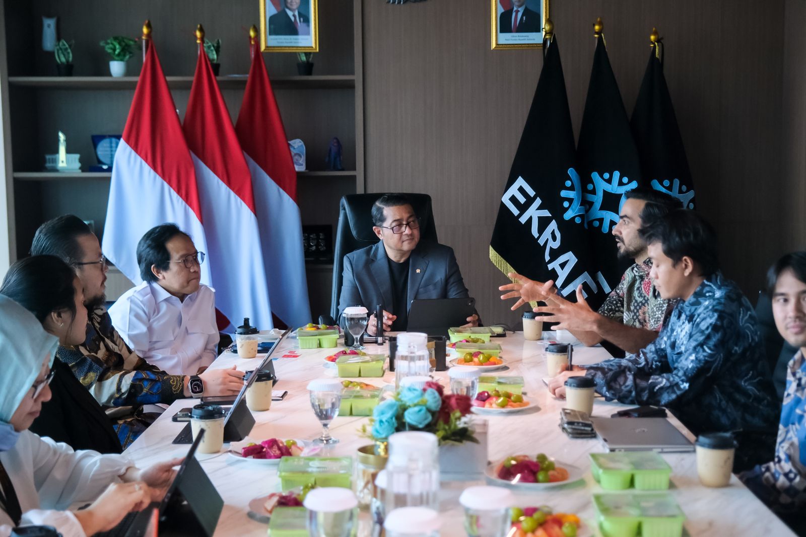 Hadir pula dalam audiensi tersebut, Deputi Bidang Pengembangan Strategis Ekraf Cecep Rukendi yang mengatakan potensi kolaborasi dapat fokus melalui program-program Asta Ekraf yang melibatkan pengembangan talenta, infrastruktur, dan pemanfaatan Hak Kekayaan Intelektual (HKI).
