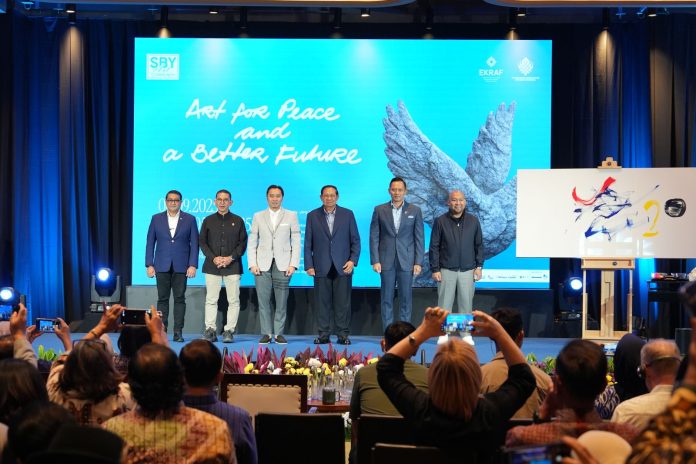 Menteri Ekonomi Kreatif (Menteri Ekraf) Teuku Riefky Harsya menyampaikan Pameran Art for Peace and a Better Future sebuah momentum kolaboratif yang melibatkan berbagai latar belakang seniman lukis dengan lebih dari 30 karya yang merefleksikan perdamaian, keberlanjutan dan harapan lintas generasi.