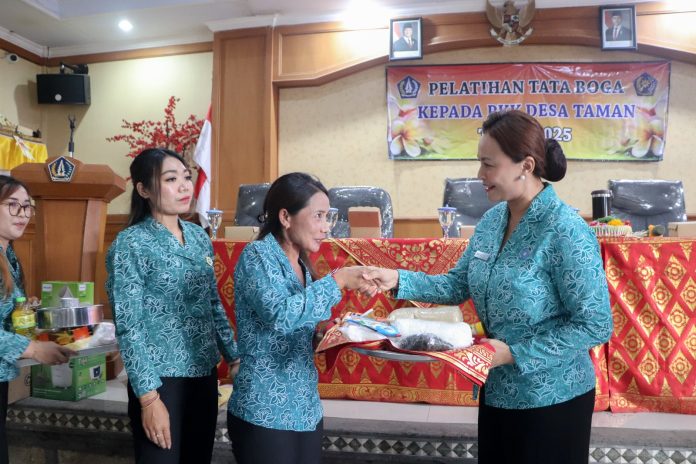 Sementara itu, Perbekel Desa Taman, I Gusti Made Sudarpa, menyampaikan bahwa program ini sudah dirancang dalam APBDes 2025. Tujuannya tidak hanya sebatas melatih ibu-ibu membuat kue, tetapi juga membekali anggota PKK dengan keterampilan yang bermanfaat untuk kehidupan sehari-hari, termasuk kebutuhan upacara adat.