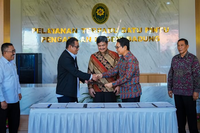 Badung, warnaberita.com – Pemerintah Kabupaten Badung secara resmi menyerahkan Hibah Barang Milik Daerah (HBMD) kepada Mahkamah Agung (MA) Republik Indonesia. Penyerahan hibah dilakukan langsung oleh Bupati Badung I Wayan Adi Arnawa kepada Wakil Ketua Mahkamah Agung RI Bidang Non Yudisial, Dwiarso Budi Santiarto, didampingi Sekretaris Mahkamah Agung Sugianto.