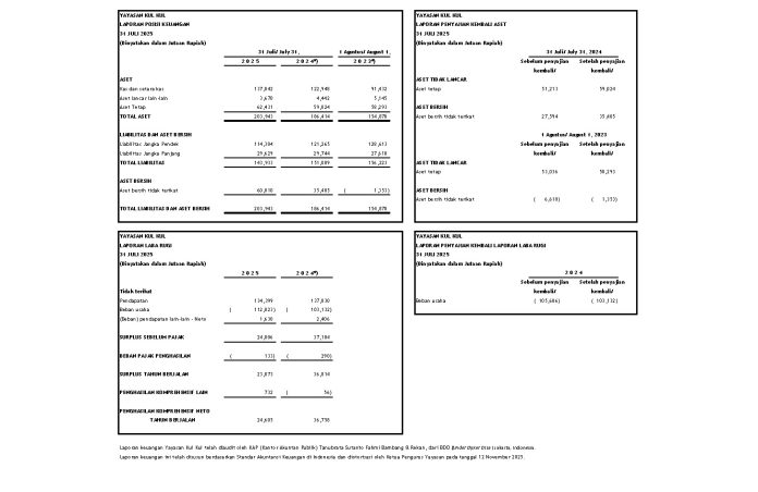 Badung, warnaberita.com – Laporan keuangan Yayasan Kul Kul tahun 2025 telah diaudit oleh KAP (Kantor Akuntan Publik) Tanubrata Sutanto Fahmi Bambang & Rekan, dari BDO (Binder Dijker Otte) Jakarta, Indonesia. Laporan keuangan ini telah disusun berdasarkan Standar Akuntansi Keuangan di Indonesia. Laporan keuangan juga telah diotorisasi oleh Ketua Pengurus Yayasan Kul Kul pada tanggal 12 November 2025.(*)