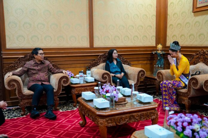 Puteri Indonesia Lingkungan 2026, Victoria Veronica Titisari Kosasieputri, berkunjung ke Pusat Pemerintahan (Puspem) Badung pada Selasa (28/4/26). Pertemuan berlangsung hangat di Ruang Tamu Bupati, menjadi momentum penting antara generasi muda berprestasi dan pemerintah daerah.