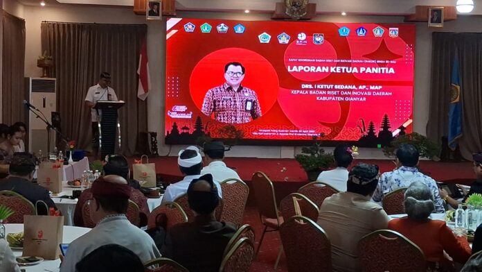 Gianyar,warnaberita.com-Rapat Koordinasi Badan Riset dan Inovasi Daerah (Rakor BRIDA) se-Bali diselenggarakan di Kori Maharani Villas, Kamis (30/4). Mengusung tema “Kolaborasi BRIDA se-Bali dalam Ekosistem Riset dan Inovasi untuk Mendukung Visi Pembangunan Daerah”, kegiatan ini bertujuan untuk memperkuat sinergi antar BRIDA kabupaten/kota se-Bali dalam mengembangkan riset dan inovasi yang berkelanjutan.